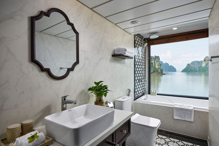 12:00 Quý khách di chuyển ra du thuyền Capella bằng tàu truyền tải.