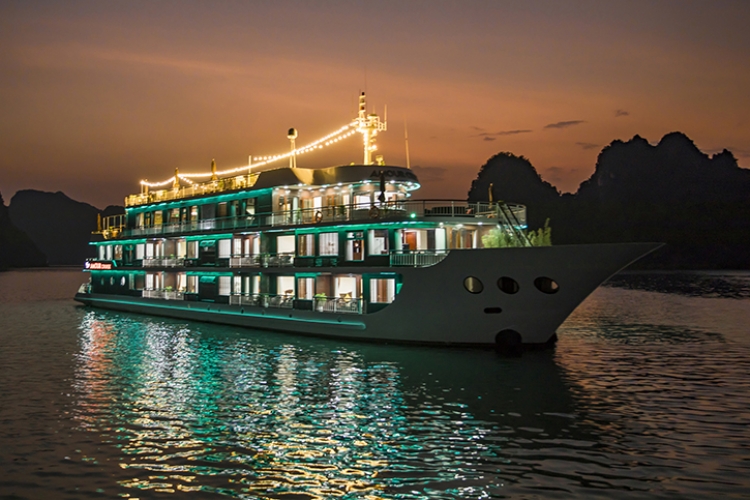 13:00: Thưởng thức hải sản Việt Nam, trong khi du thuyền đang lướt trên Vịnh Hạ Long - Lan Hạ tráng lệ, chiêm ngưỡng những kiến tạo đá hấp dẫn trong vịnh.