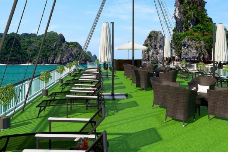 17:30: Quý khách quay lại du thuyền để tự do giải trí, ngắm hoàng hôn và thưởng thức trà chiều, trái cây tươi.