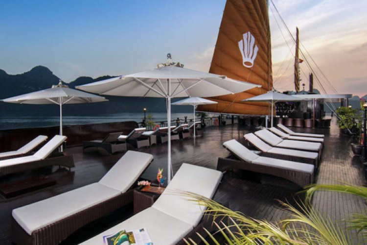 Indochina Sails là thương hiệu tàu gỗ nổi tiếng trên vịnh Hạ Long. Nhóm khách lớn có thể thuê trọn tàu và sử dụng tiện nghi hội họp trên tàu. Du khách có cơ hội tham gia cả lớp học tỉa hoa quả và nấu ăn thay vì chỉ có lớp học nấu ăn như các tàu thông thường. Bữa ăn trên tàu là menu có sẵn kết hợp giữa các món Việt, quốc tế. Thưởng thức bữa ăn tại nhà hàng trong khi tàu di chuyển qua những địa điểm tuyệt đẹp trên vịnh Hạ Long như Lư Hương, Gà Chọi, Ngón Tay.