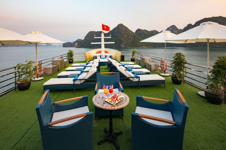 16h00: Trở lại thuyền Syrena. Quý khách thư giãn trên sundeck, ngắm cảnh vịnh.chương trình massage thư giãn luôn đáp ứng yêu cầu của Quý khách.