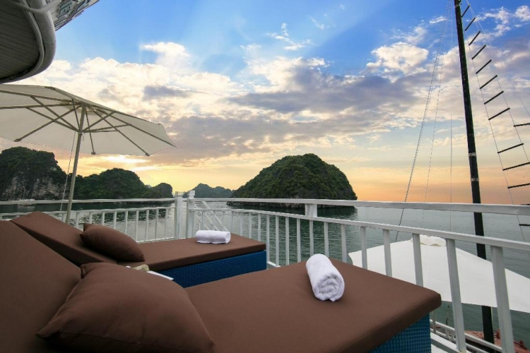 09h00: Qúy khách quay trở lại du thuyền làm thủ tục trả phòng, tự do thư giãn, tắm nắng, chiêm ngưỡng các đảo đá vôi với nhiều hình thù kì lạ