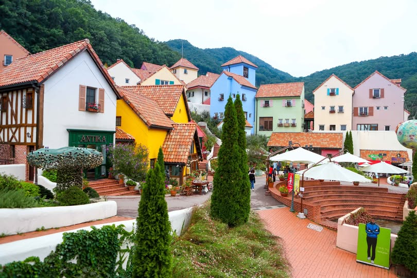 Quán cà phê Petite France là nơi Baek Seung-jo và Oh Ha-ni uống cà phê trong “Playful Kiss”. Nhà gỗ màu pastel xếp san sát, chuông gió reo leng keng, view núi non bao quanh. Cảnh quay diễn ra ở ban công – bạn có thể gọi latte, ngồi ghế gỗ, chụp ảnh “cà phê tình yêu” với nền núi xanh. Petite France cách Seoul 1 giờ, là làng Pháp thu nhỏ với 16 tòa nhà kiểu Âu, mở cửa 9:00–18:00.
