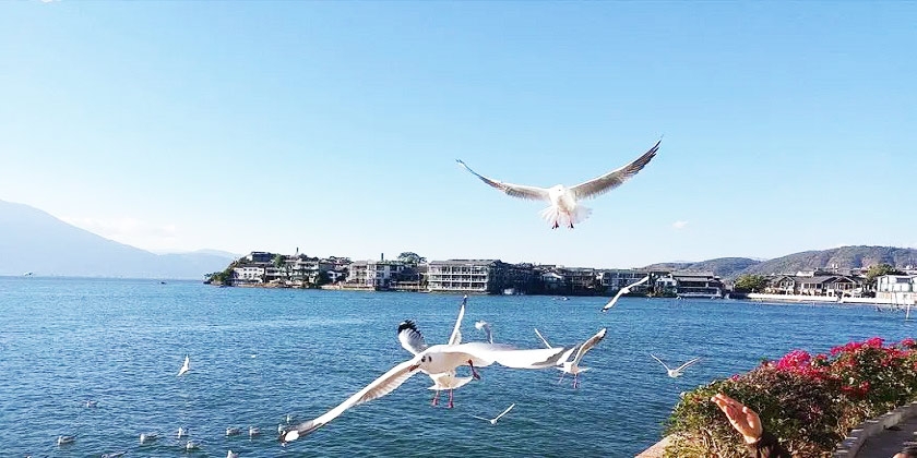 - Đoàn di chuyển đến Santorini – phiên bản “Địa Trung Hải thu nhỏ”, view hướng ra hồ Nhĩ Hải (không bao gồm xe điện 10 tệ/khách)