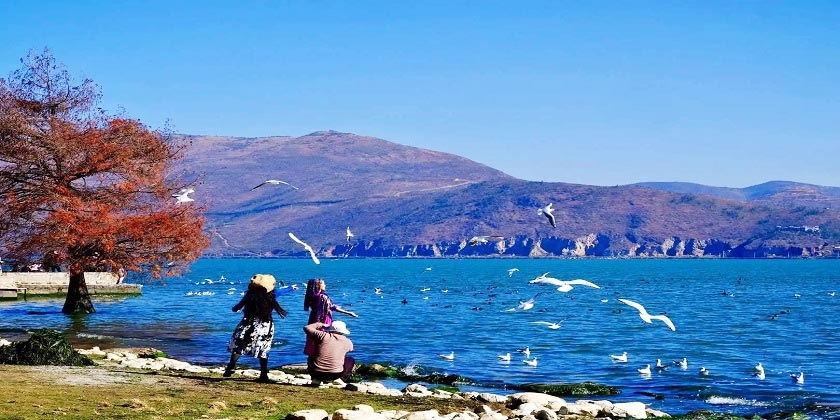 Sau đó đoàn khởi hành đi tham quan Đoàn tham quan Đại Quan Lầu – một bức tranh lãng mạn của mùa thu Côn Minh hiện ra trước mắt